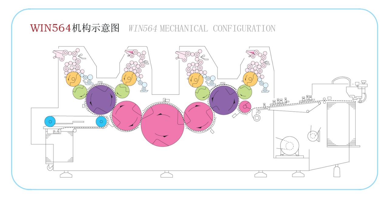 9) Naudojant dvigubo skersmens atspaudų cilindrus ir trigubo skersmens perkėlimo cilindrus sumažėja popieriaus pervedimų skaičius, todėl pagerėja popieriaus registravimo tikslumas.