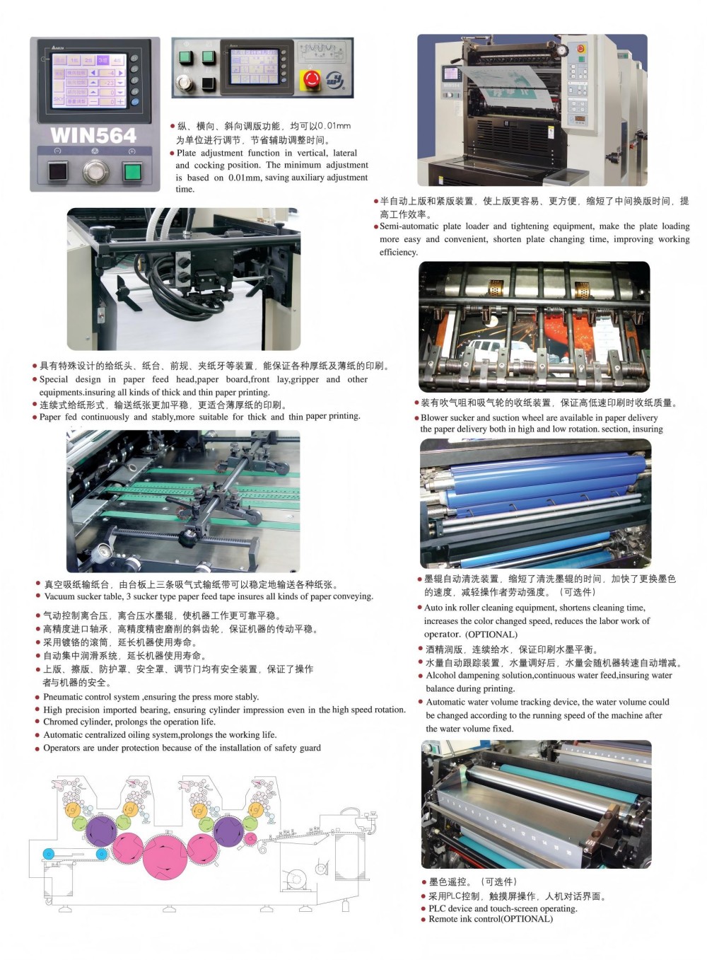 A2 keturių spalvų etikečių ofsetinės spaudos presas sukurtas su itin našiais moduliais ir visi jie yra aukščiausios kokybės – didelio tikslumo ritinėliai ir krumpliaračiai, stiprus popieriaus tiekimo mechanizmas, itin tiksli popieriaus registravimo sistema ir stabili rašalo tiekimo sistema. Jis sukurtas taip, kad atitiktų rinkos reikalavimus kokybiškam, efektyviam ir prieinamam spalvotam spausdinimui iš iškirptų lapų. Taip pat nereikia laikytis vieno storio popieriaus – jis veikia su plonu popieriumi (0,04 mm) iki storo kartono (0,4 mm). Taip pat yra jutiklinio ekrano valdymas su intuityvia programavimo sąsaja, leidžiančia sumaniai ir paprastai reguliuoti nustatymus ir spausdinimo parametrus.